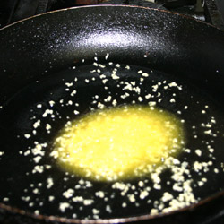 | 5- Em uma frigideira, coloque a manteiga e doure o alho. |