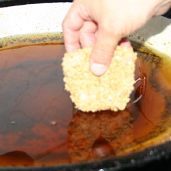 | 3- Faça a imersão do filé na massa de tempurá. |