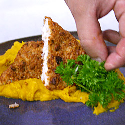 | Robalo em crosta brasileira com purê de kabocha e gengibre |
